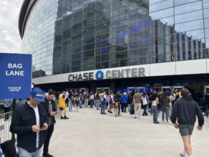 そして初日のメインイベントのゴールデンステイトウォリアーズ(GSW)ーロサンゼルスレイカーズ(LAL)のNBA観戦が17時半ティップオフ。休憩もそこそこに会場のChase Centerへ向かいたかったが、観戦チケットについて問題発生。
