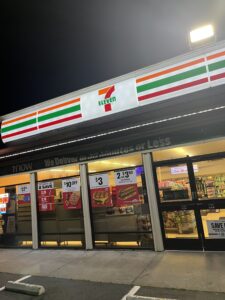 そんな素敵空間もあっという間、宿へ帰る時間。慣れない運転を頑張りホテルへ向かう途中に小腹が空いたからと途中にあるセブンイレブンへ。