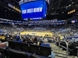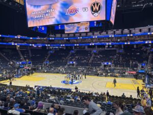 試合会場は前日と同じChase Center、ウォリアーズの下部チームであるサンタクルーズウォリアーズ vs サンディエゴクリッパーズの試合。