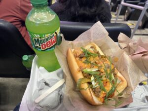 本日のブランチ。アリーナ飯は高い。リフィル可能なカップも選べたけど、リフィル場所を確認する英語がパッと出てこなかったのでボトルで妥協した。サンドはプルコギ的なものにチーズが載ってるカロリーお化け。美味かった、でも高かった笑