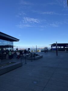 アリーナ裏の海を一望できるオシャレなバー。