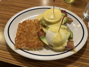 ハッシュドブラウンとアボカードチーズ乗せエッグベネディクト。ボリュームもカロリーも盛りだくさん。2日目も充実でした。